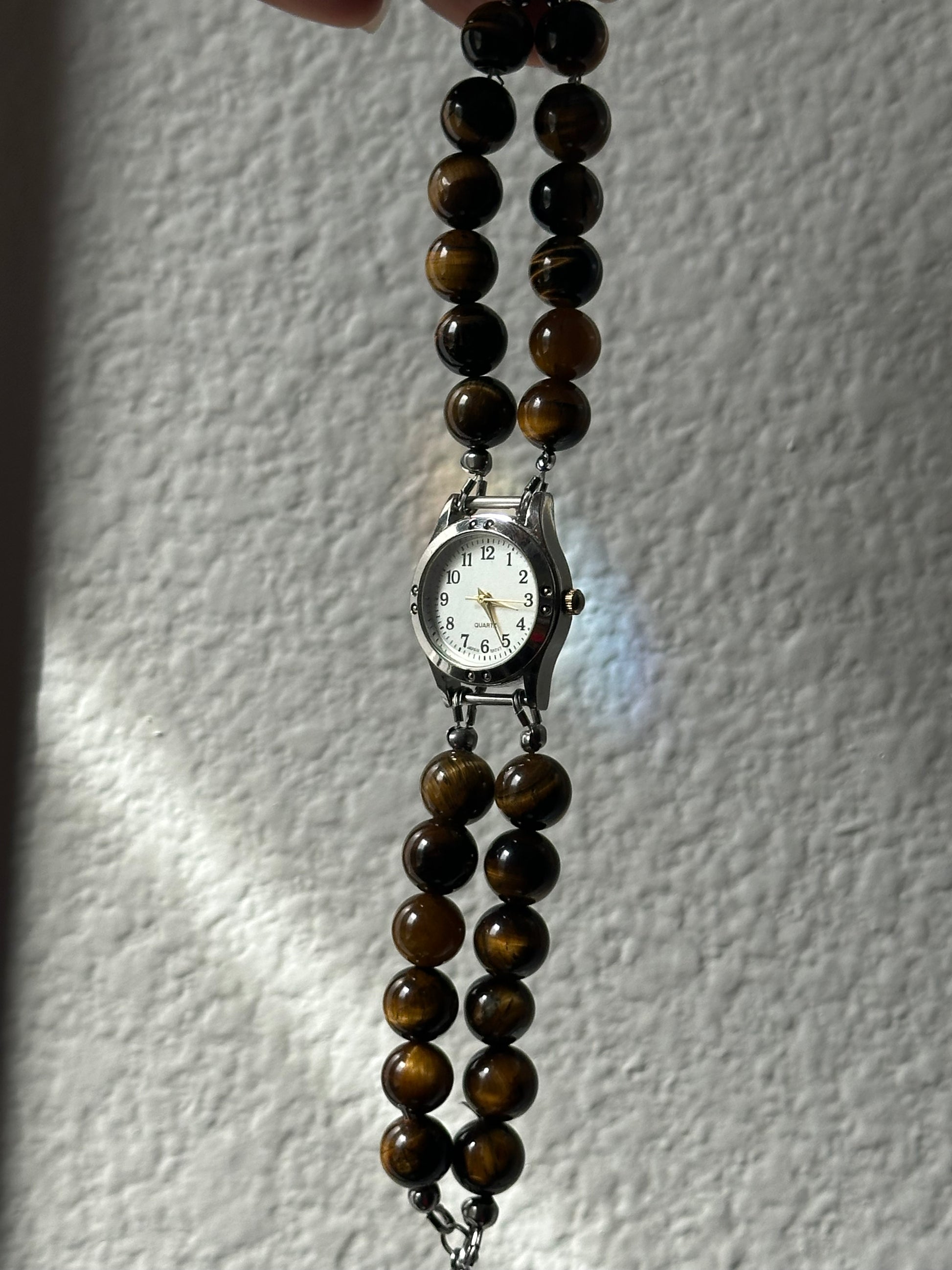 ♡︎ Second-hand/ vintage watch face, with handmade beaded watch band made with round Tiger Eye beads.