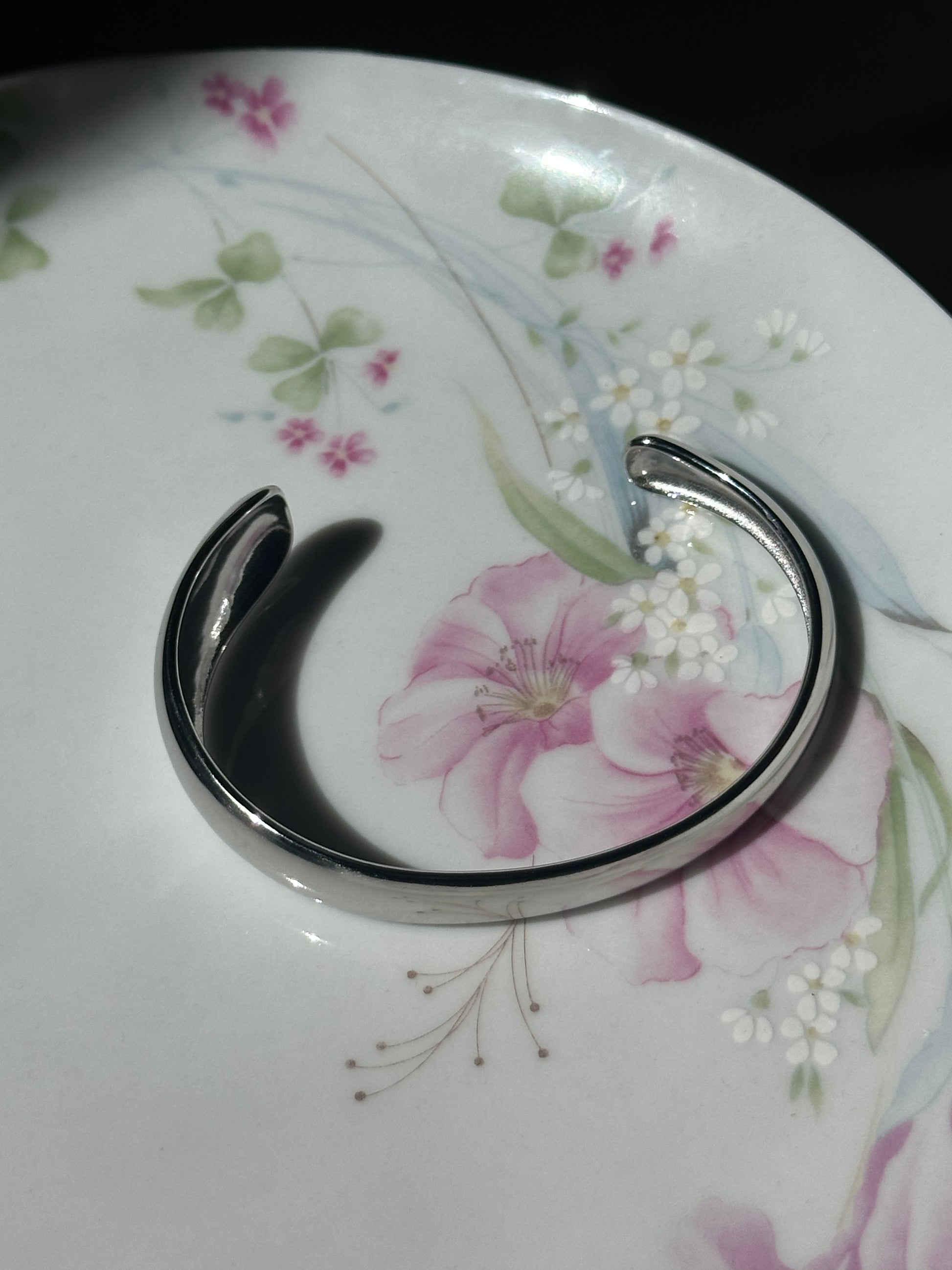♡ 7in in diameter; squeeze or pull to adjust sizing smaller to wrist as a bracelet or larger on forearm as an arm cuff.