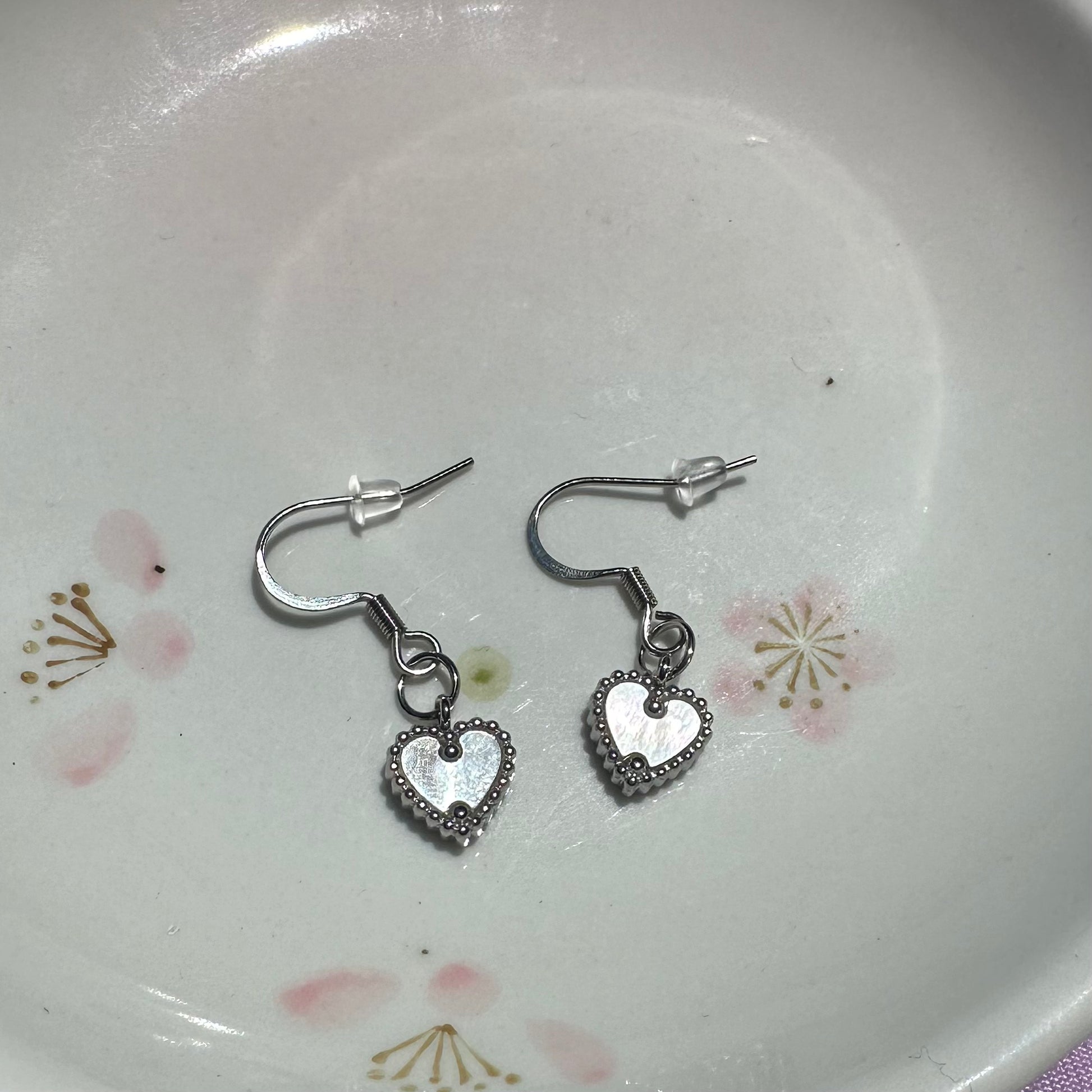 ♡︎ Daintily handmade with pearl shell heart pendants.