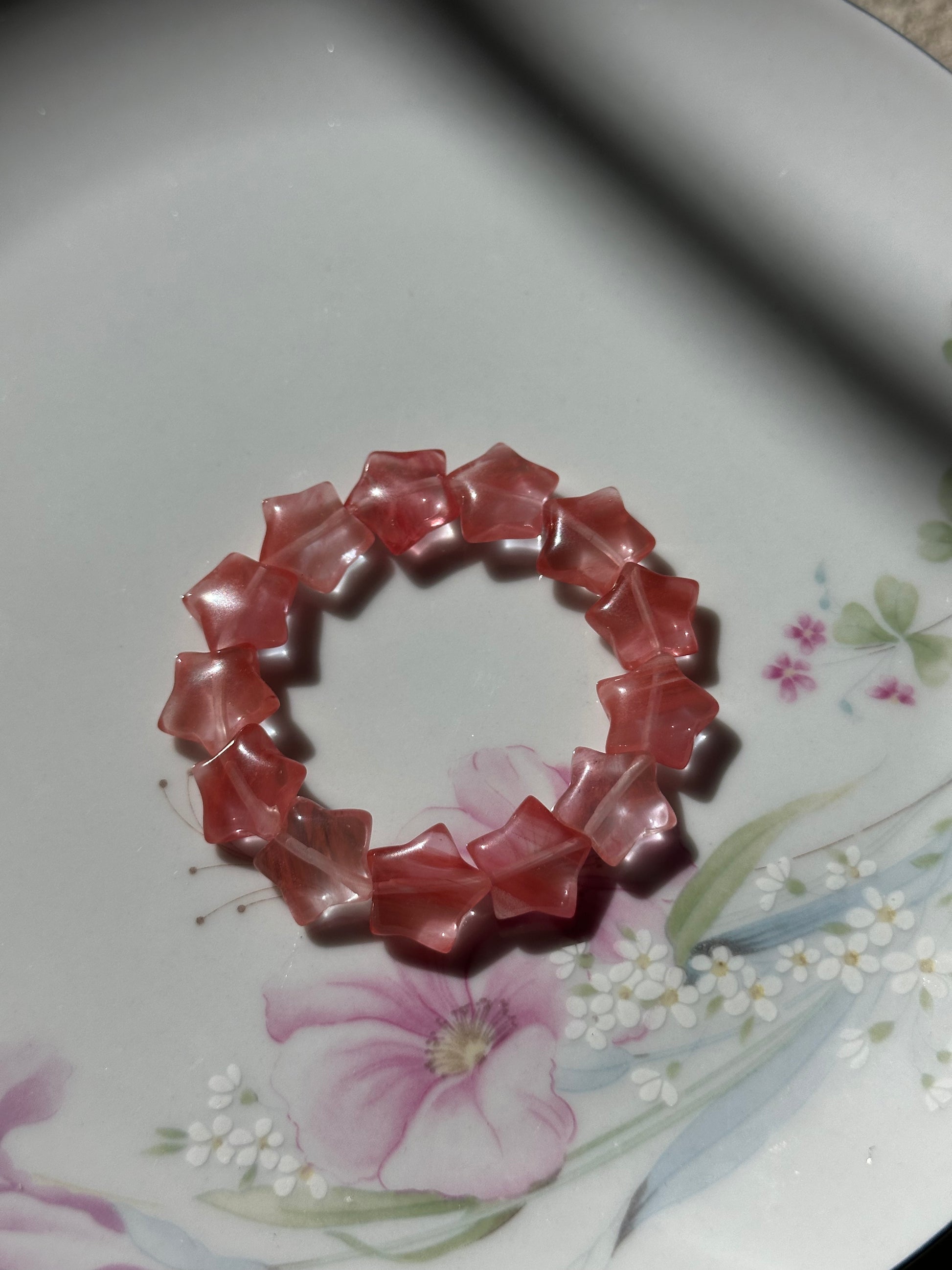 ♡ Hand strung with stretchy beading cord and Cherry Quartz star beads.