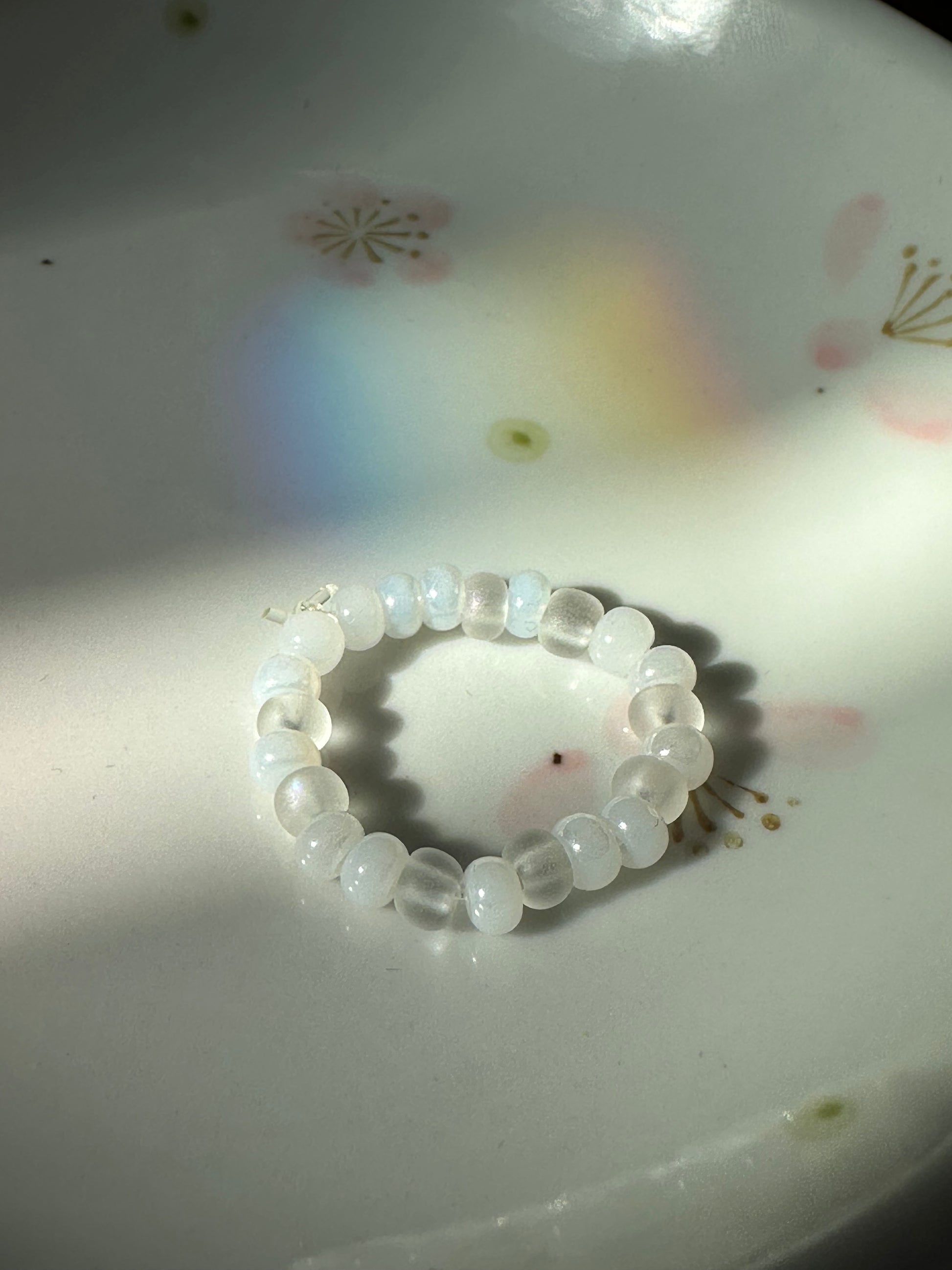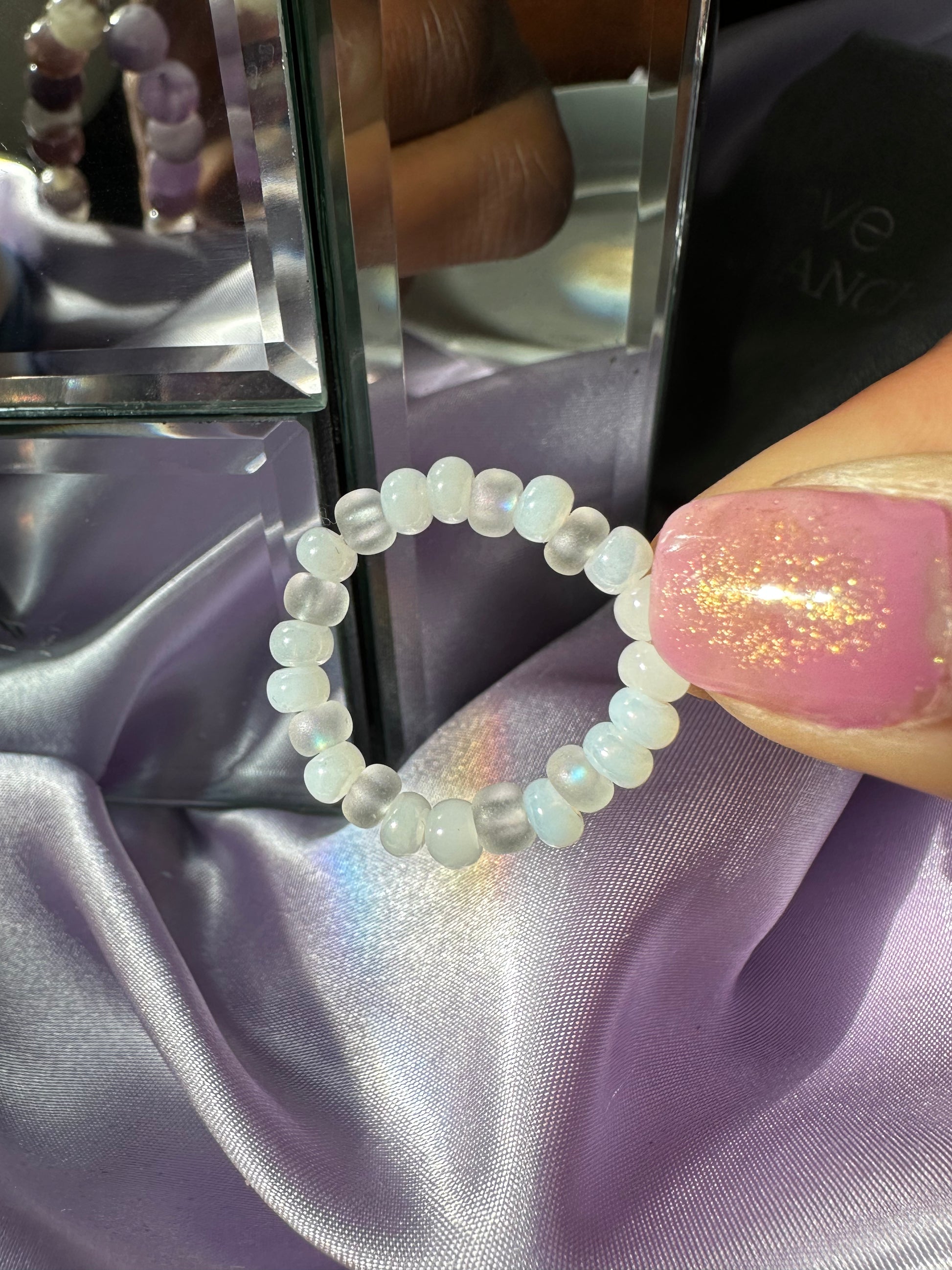 Note: Each beaded ring is slightly stretchy. However, stretching too far may lead to damage.