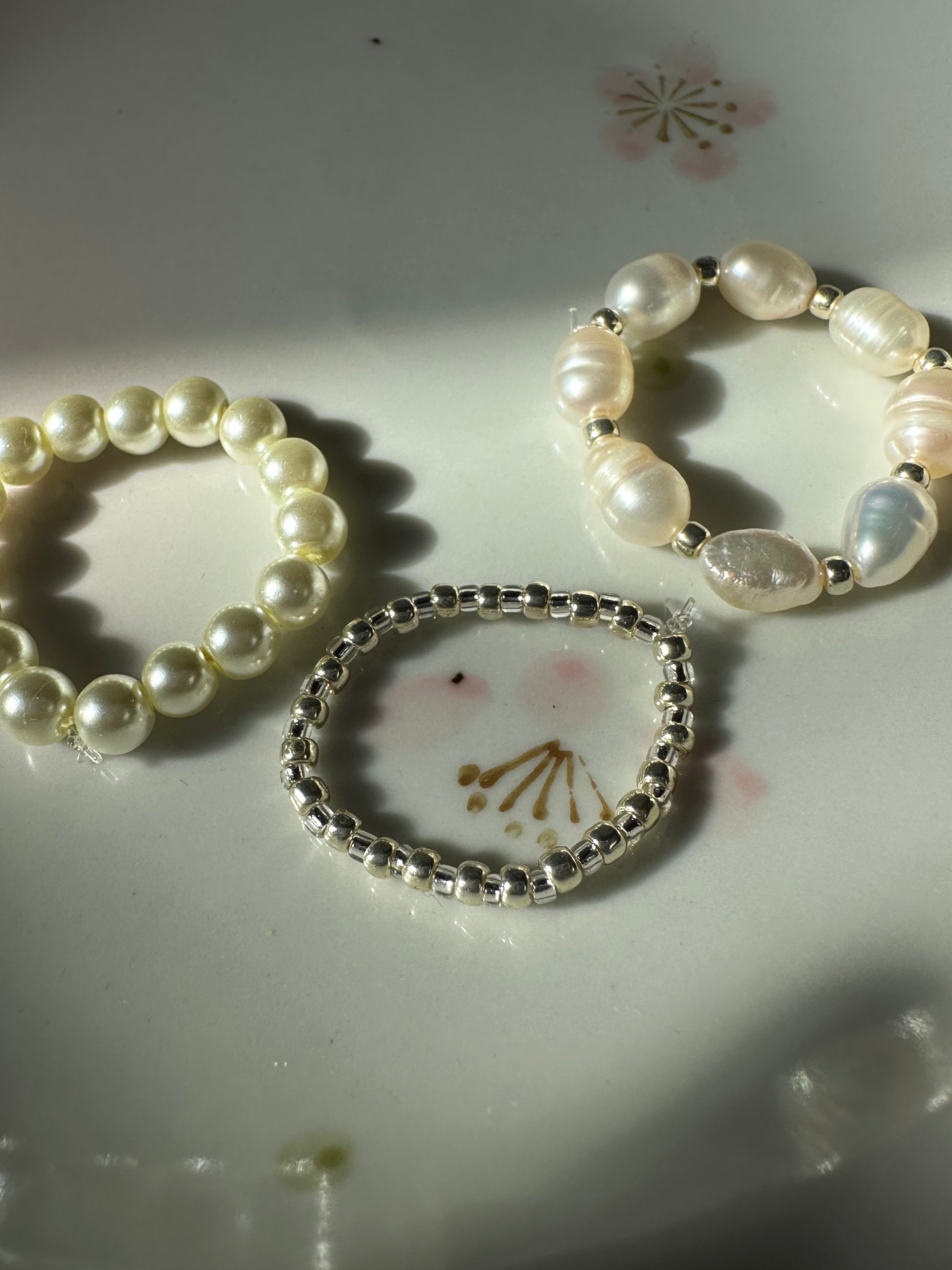 Note: Each beaded ring is slightly stretchy. However, stretching too far may lead to damage.