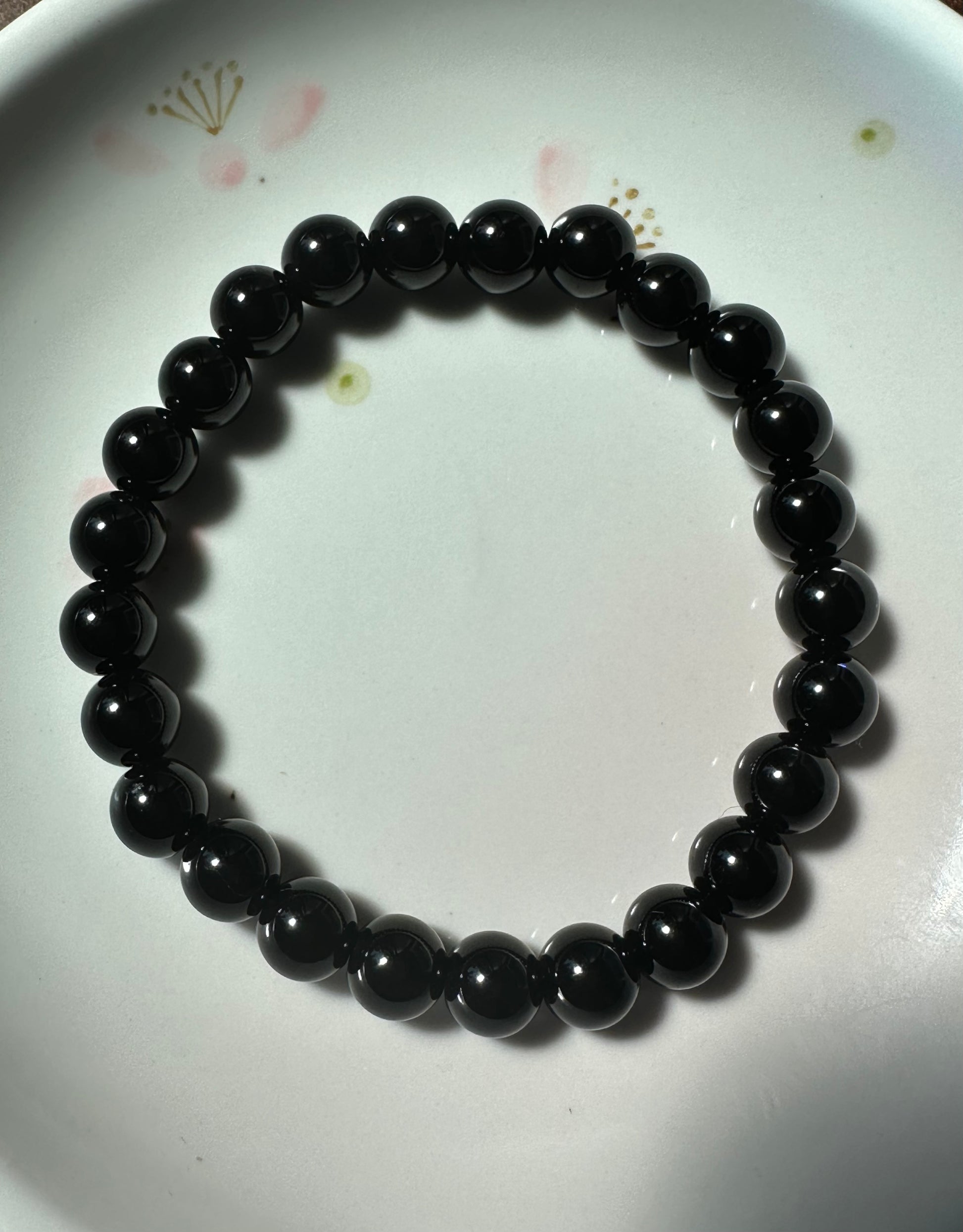♡ Handmade with natural smooth 8mm Black Onyx beads.