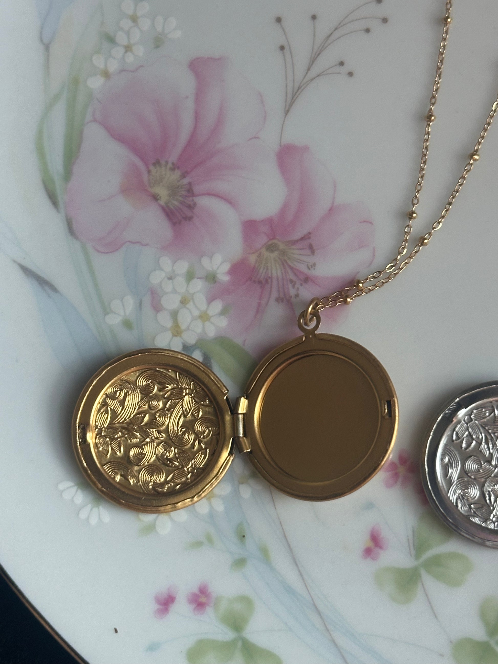 Circle Floral Locket Necklace