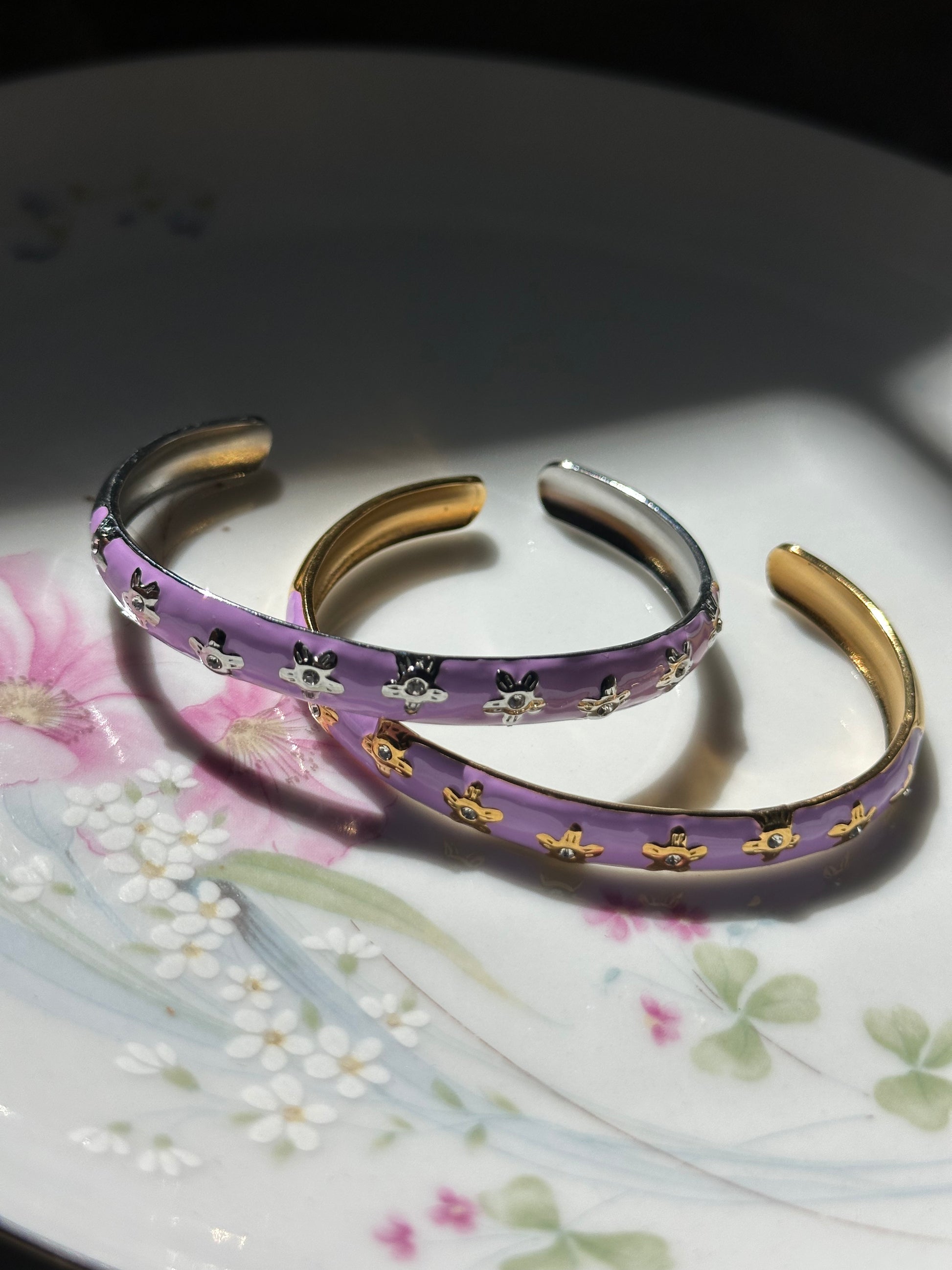 ♡ Manufactured with stainless steel materials, blue, purple, or white enamel, and zircon crystals.